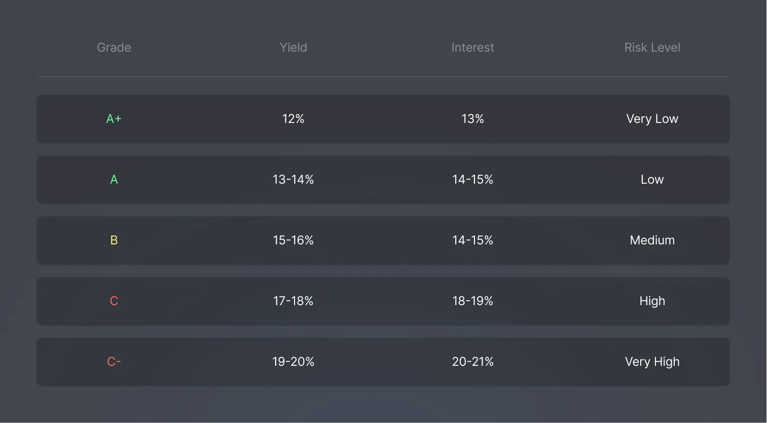 Peer-to-peer lending rate and fees.